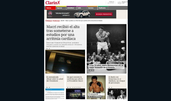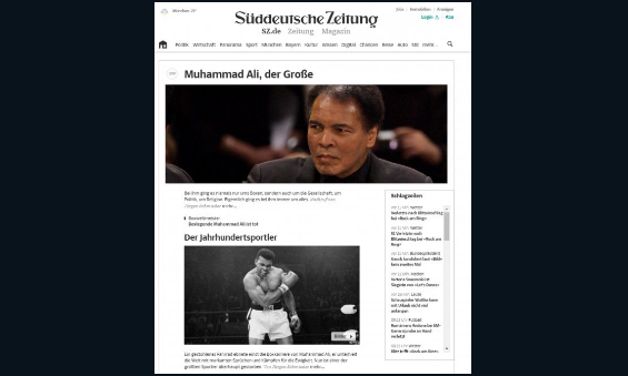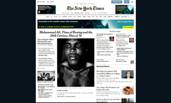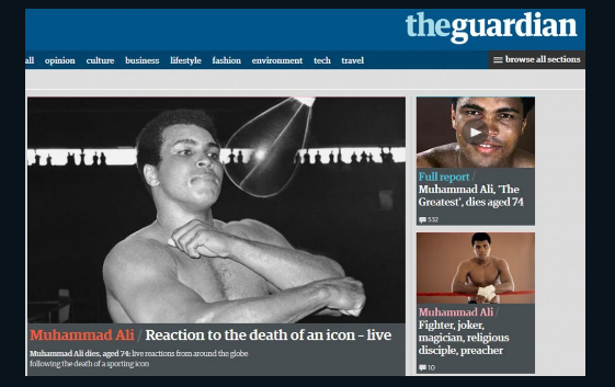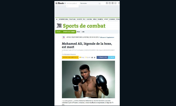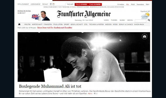 I “media” tutti con Alì – “Dalla Cnn a El Pais, l’apertura dei principali siti e media di tutto il mondo è dedicata alla morte di Muhammad Ali: “Il più grande se ne è andato”. “La leggenda del pugilato muore a 74 anni”, ha titolato la Bbc così come lo spagnolo El Pais ed il francese Le Monde. “Muore un’icona del pugilato“, è l’apertura dell’inglese Guardian che dedica alla notizia un’ampia copertura. “Muhammad Ali, il più grande tutti i tempi”, titola la Nbc che naturalmente apre con la morte del campione come tutti gli altri media americani. “Muhammad Ali, titano del pugilato e del XX secolo muore”, scrive il New York Times. In Sud America, l’argentino Clarin lo celebra come il“miglior pugile della storia” e il brasiliano Globo come “una leggenda nella storia della boxe”. “La leggenda del pugilato è morta”, è anche il titolo dei tedeschi Suddeutsche Zeitung e Frankfurter Allgemeine. L’India Times dedica un editoriale al “più grande pugile di tutti i tempi”. E il convertito all’islam Muhammad Ali è ricordato anche dalle tv panarabe Al Arabiya e Al Jazeera che aprono i loro siti con la notizia della morte.