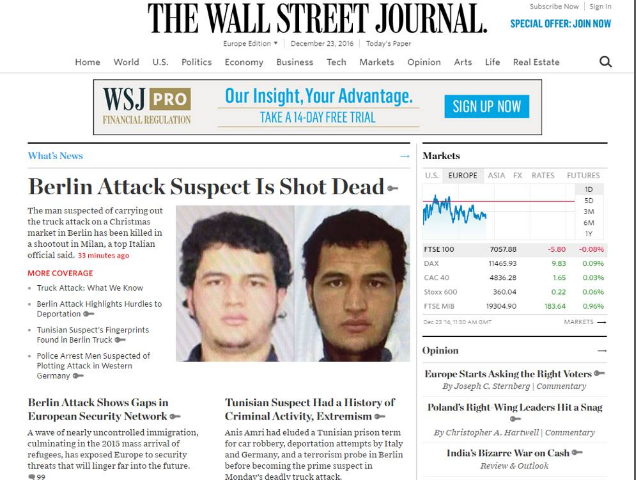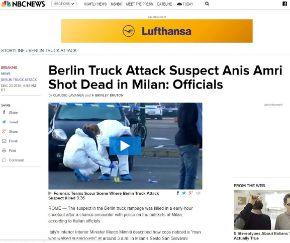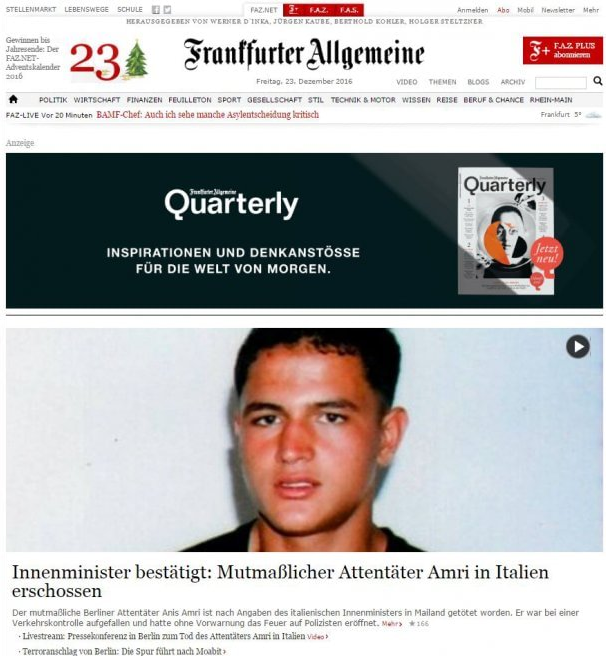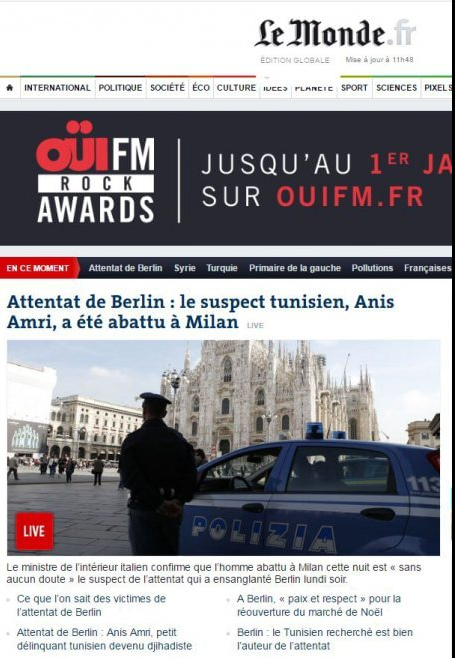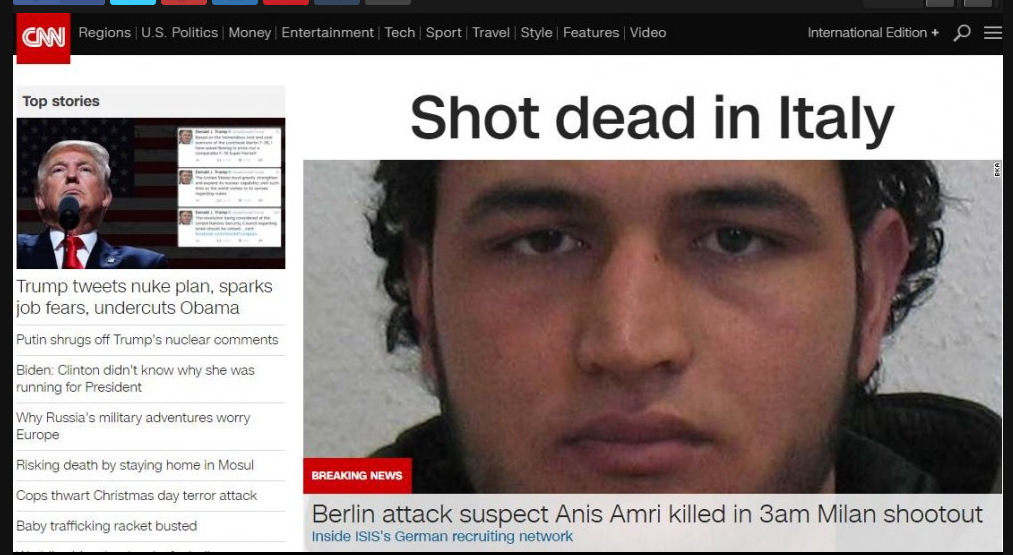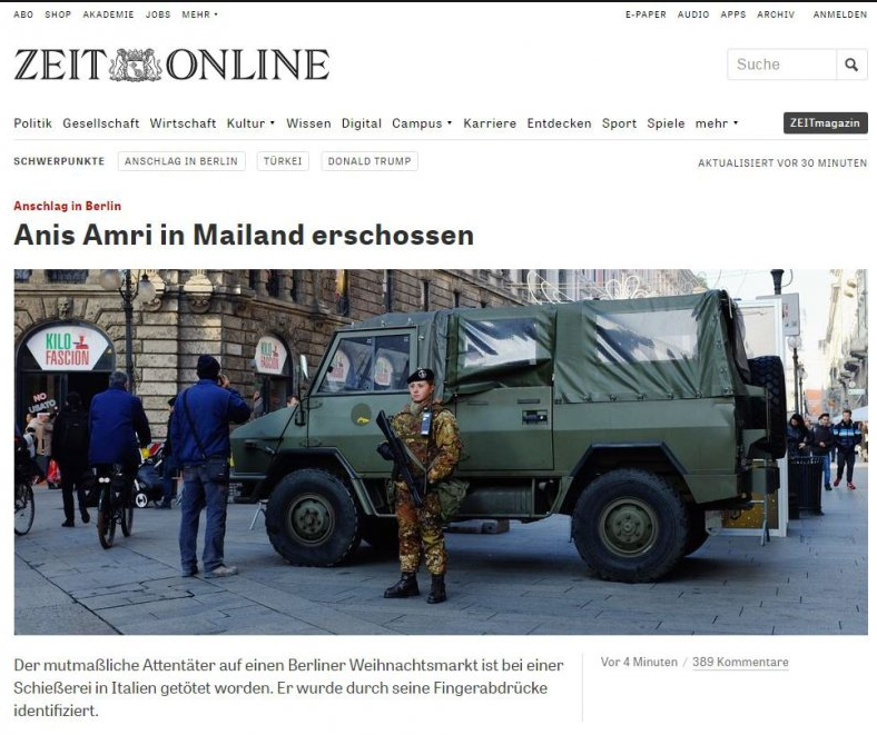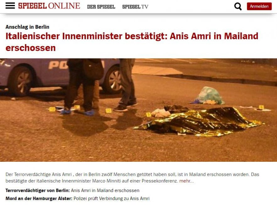 La notizia ha fatto subito il giro del mondo venendo ripresa e rilanciata dalla stampa internazionale e con grande enfasi dalla stampa tedesca. “Grati all’Italia, la morte di Amri è un sollievo“. il commento del Ministro dell’ Interno tedesco De Maizière. Arrivano da Berlino i ringraziamenti alle forze dell’ordine e alle autorità italiane dopo l’operazione di polizia a Sesto San Giovanni in cui è rimasto ucciso il killer di Berlino.