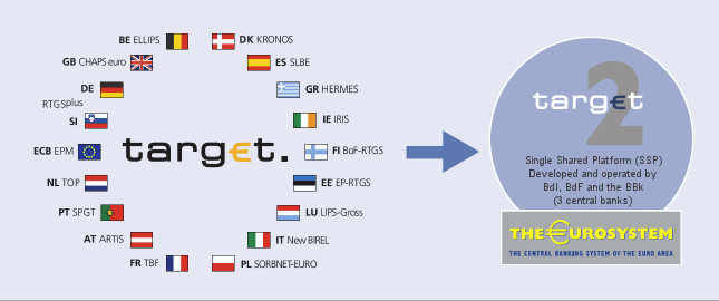 Il ‘Trans-European Automated Real-Time Gross Settlement Express Transfer System’ (Target2), è uno dei più grandi sistemi di pagamento al mondo e viene utilizzato dagli istituti di credito le operazioni effettuate in euro sia per proprio conto, sia per i clienti. Attraverso questa piattaforma il denaro circola in maniera veloce e in sicurezza, evitando burocrazia e tecnicismi che ne rallenterebbero il flusso. Viene gestito dalle banche centrali di Italia, Francia e Germania per conto dell’Eurosistema.