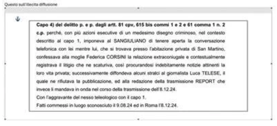 “Come sottolinea la Procura, a differenza di un altro giornalista al quale l’audio era stato ‘proposto’ e che lo aveva rifiutato, Report ha scelto di accettarlo e diffonderlo, pur conoscendone la provenienza illecita. Ciò rileva sia sotto il profilo penale (atti persecutori e interferenza illecita nella vita privata), sia sotto quello della tutela della riservatezza. Nella richiesta di rinvio a giudizio della Procura di Roma, al capo 4) di imputazione, si fa riferimento esplicito anche alla data dell’8 dicembre 2024, giorno della messa in onda della trasmissione, e di commissione del reato, evidenziando la piena consapevolezza della natura illecita del materiale diffuso. È quindi fuorviante, e palesemente ‘difensiva’, la tesi – sottolinea – secondo cui il Garante sarebbe stato mosso da influenze esterne o da valutazioni politiche”.