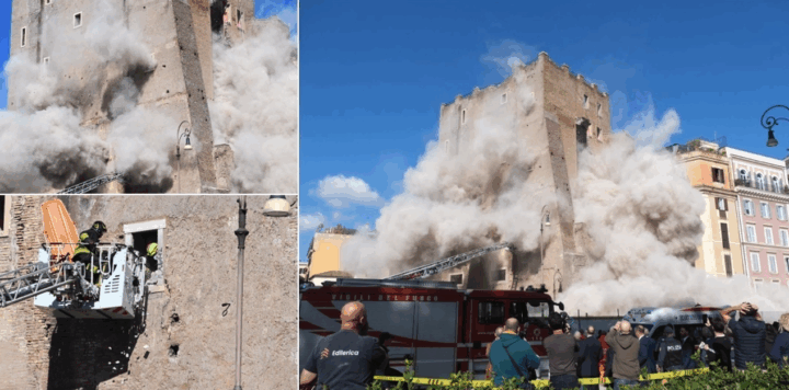 “Abbiamo sentito un boato intorno alle 11.20. Un rumore sordo, a cui però ci eravamo abituati in queste settimane per il cantiere. Poi abbiamo capito che era molto più forte e diverso. Ci siamo precipitati all’esterno e abbiamo visto la torre staccarsi. La prima cosa a cui ho pensato sono stati gli operai, nostri clienti, che vengono qui ogni giorno”, ha detto all’Adnkronos Giorgia, la titolare del bar in largo Corrado Ricci, ubicato proprio davanti alla torre crollata. “Ero fuori a servire i tavoli, quando ho sentito un rumore di calcinacci. Ho alzato la testa e ho visto un operaio cadere”, ha raccontato una cameriera del ristorante in via del Colosseo.