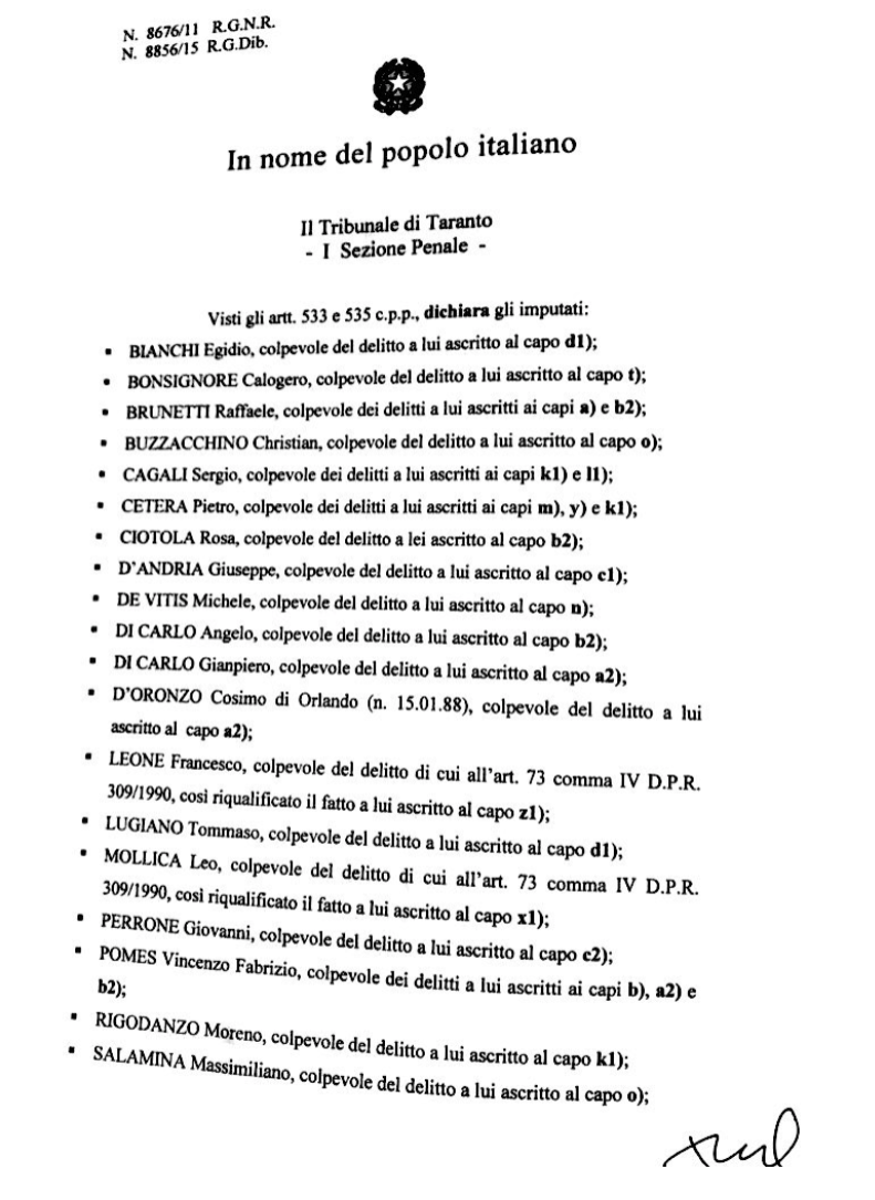 Fabrizio Pomes, ex-segretario provinciale del PSI, è stato condannato a 11 anni e 6 mesi , lo scorso 25 luglio 2017 dal Giudice dr.ssa Patrizia Todisco della 1a sezione Penale del Tribunale di Taranto