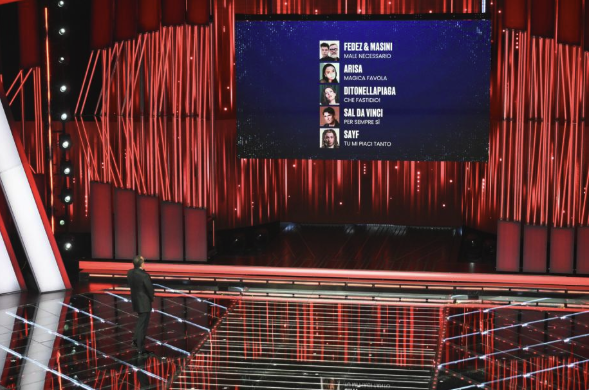 Le 30 esibizioni della prima serata di martedì sono state votate esclusivamente dalla sala stampa, tv e web che ha dato la prima classifica provvisoria con Arisa, Fulminacci, Serena Brancale, Ditonellapiaga, Fedez e Masini tra i primi cinque, senza ordine di piazzamento.