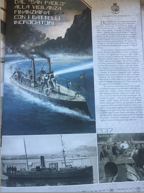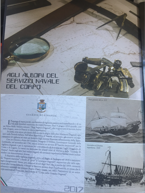 Immagini e testi ripercorrono pagina dopo pagina arrivando ai nostri giorni le tappe più significative di una storia di indiscusso valore che dal 181continua ad arricchirsi ogni giorno di più grazie all’esperienza maturata sul campo dai Finanzieri impegnati nei più vari e difficoltosi scenari operativi in mare che vedono la Guardia di Finanza al servizio anche di esigenze di natura sovranazionale.