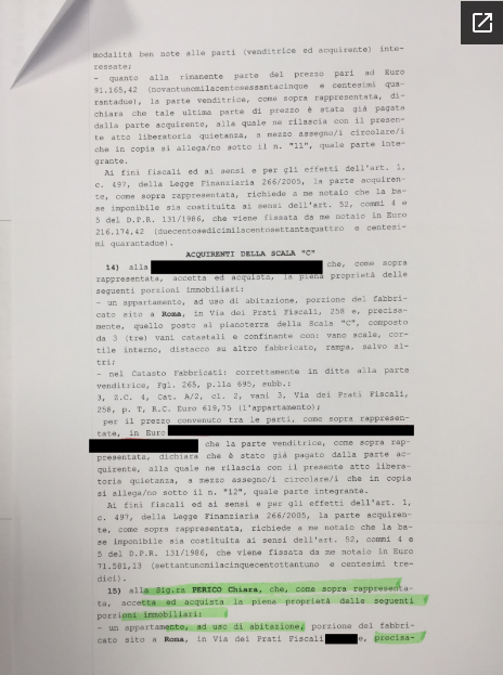E attraverso certificati di residenza, deliberazioni della giunta e fogli del catasto racconterà la passione di Marra e famiglia per il mattone: se qualche settimana fa spiegammo come nel 2010, sempre da capo delle Politiche abitative e della Casa, Marra sia riuscito a comprare un attico di lusso dall’imprenditore Sergio Scarpellini (in affari con il Comune di Roma), ottenendo uno sconto di quasi mezzo milione di euro rispetto ai prezzi di mercato in barba a qualsiasi conflitto di interessi, oggi scopriamo che il dirigente ha poi messo a segno un altro mega affare: sua moglie Chiara Perico (già assunta nel 2008 nello staff dell’assessore al Personale, l’ “alemanniano” Enrico Cavallari), nel maggio del 2013 è riuscita a prendere dalla Fondazione Enasarco, ente sotto controllo pubblico, un appartamento da 152 metri quadri più un box auto per appena 367 mila euro, in un elegante condominio a via dei Prati Fiscali.