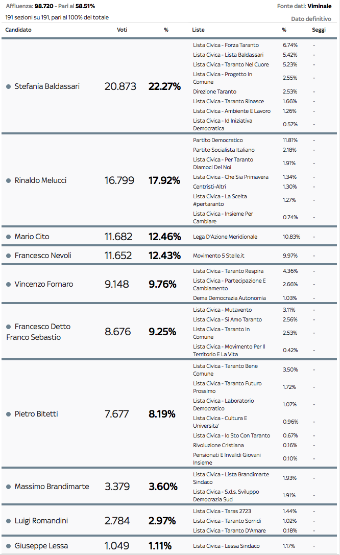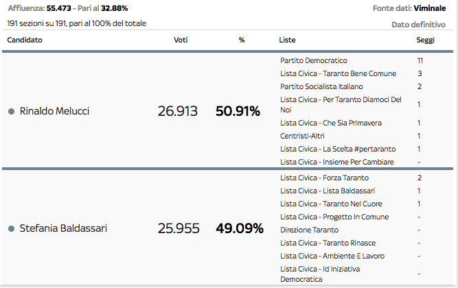 Per aiutare il lettore a comprendere meglio la situazione attuale , ripubblichiamo il risultato elettorale finale delle Elezioni Comunali 2017 che portarono sulla poltrona di sindaco Rinaldo Melucci, per appena 958 voti di preferenza, grazie anche ad un affluenza alle urna elettorali che, rispetto al 1° turno si dimezzò letteralmente.