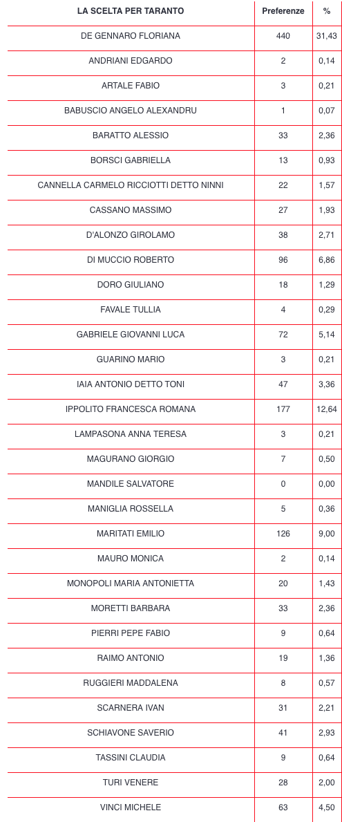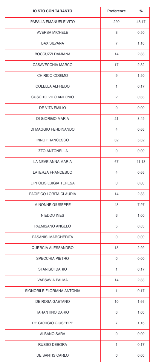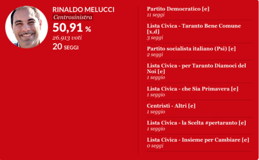 Precedentemente alle elezioni provinciali, quando ancora non era noto il nome del candidato contrapposto a Melucci, un campione rappresentativo degli oltre nostri 50mila amici-contatti (pagina personale, pagina pubblica, e gruppi) si era già espresso con un 90% in favore di chiunque si candidasse contro Melucci, e questo spiega come mai Gugliotti abbia distanziato di oltre 20mila voti ponderati il Sindaco di Taranto, che si è visto votare contro nel segreto dell’urna da 3 consiglieri (per un totale di 3.000 voti ponderati) della sua traballante ed ondivaga maggioranza in Consiglio Comunale.