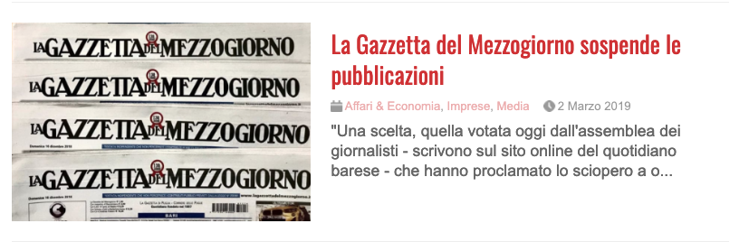 Ai giornalisti della Gazzetta del Mezzogiorno (salvo qualche eccezione….) auguriamo di tutto cuore di poter mantenere il loro posto di lavoro e di ritornare il prima possibile in edicola con il loro giornale, anche tutto questo baccano sindacale secondo noi non giova assolutamente a trovare una soluzione, come i fatti hanno sinora dimostrato. Soluzione che certamente dovrà e potrà passare esclusivamente dalle decisioni dei giudici di Catania, nella legalità più assoluta.