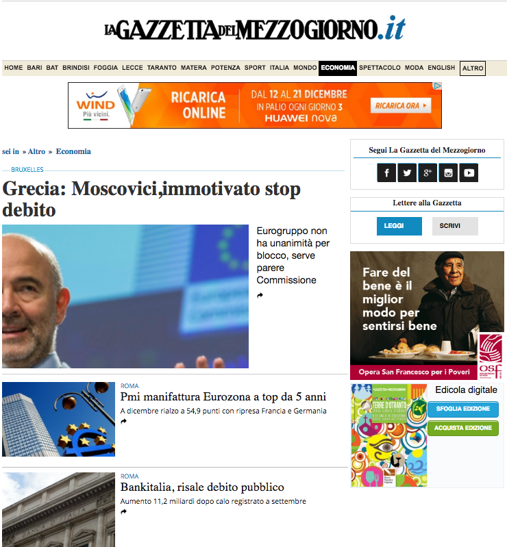 P.S. Inutile cercare la notizia su La Gazzetta del Mezzogiorno. Infatti la banca detiene in pegno il 30% delle azioni della società editrice del quotidiano siculo-barese, e quindi tutto tace… Come sempre “indifferenti” e silenti l’ Ordine dei Giornalisti e l’ Assostampa il sindacato dei giornalisti locale il cui presidente guarda caso lavora anch’egli (grazie ai contratti di solidarietà da oltre un anno) alla Gazzetta del Mezzogiorno. Ma questo non è una novità…e poi parlano di libertà di stampa, di etica professionale, di indipendenza ! Parole al vento.