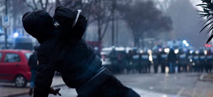 Dietro lo striscione sono sparite le famiglie sostituite da volti coperti da passamontagna. Gli idranti sono entrati in azione ma le prime file sono arrivate a contatto. Con le prime manganellate sono iniziati lanci di pietre e lacrimogeni. Mezz’ora di battaglia, alcuni cassonetti sono stati dati alle fiamme. I manifestanti hanno provato ad avanzare su corso Regina Margherita, venendorespinti in un primo momento dalle forze dell’ordine con cariche, idranti e lacrimogeni.