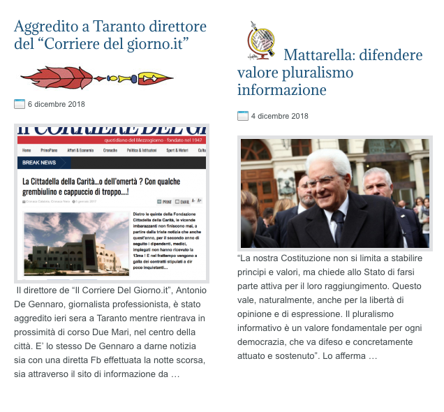 Unico silenzio a dir poco imbarazzante se non vergognoso, quello del Sindaco di Taranto Rinaldo Melucci, dell’ Ordine dei Giornalisti di Puglia e dell’ Assostampa pugliese, nonostante la notizia sia stata data anche al telegiornale RAI Puglia insieme a tutti gli organi di stampa locali. Anche in questo caso la Gazzetta del Mezzogiorno, nell’edizione di Taranto, ha vergognosamente “bucato” cioè non ha dato alcuna notizia ai suoi sparuti lettori, nonostante amici e colleghi della redazione centrale del giornale barese, attualmente gestito da un commissario giudiziario, lo abbiano fatto in forma “privata”, dicendoci “purtroppo questo giornale (il loro n.d.r.) non è più la Gazzetta di un tempo…“.