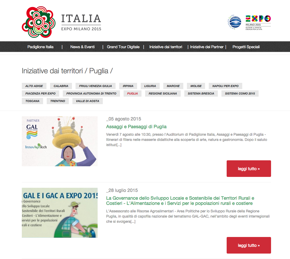 Anche la Puglia avrà la sua vetrina all’Expo di Milano, per una settimana dal 21 al 27 agosto, all’interno del padiglione dell’Italia, dove mostrerà le bellezze pugliesi nell’ambito della mostra sulle Regioni. Ma quanto è costata l’operazione Expo ai contribuenti pugliesi ? La Regione sta spendendo, tutto compreso, un milione di euro. per una sola settimana. Oltre alla spesa prevista di 300mila euro (+ IVA) ad Expo2015 , al padiglione nell’area fieristica, vanno calcolate anche le iniziative collaterali con la presenza della Puglia al «fuori Expo», uno spazio che è stato allestito nell’ex Diurno di piazza del Duomo, nel cuore di Milano, dove la Regione Puglia ha deciso di spendere altri 360mila euro.