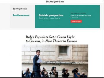 ROMA – “I populisti si prendono Roma”. A scriverlo oggi è un durissimo editoriale del New York Times, che definisce il primo ministro incaricato Giuseppe Conte giustamente come di uno “sconosciuto professore di legge” con un curriculum taroccato , “la cui principale qualifica è la sua disponibilità ad eseguire gli ordini” di Salvini leader della Lega e Di Maio del M5S.
