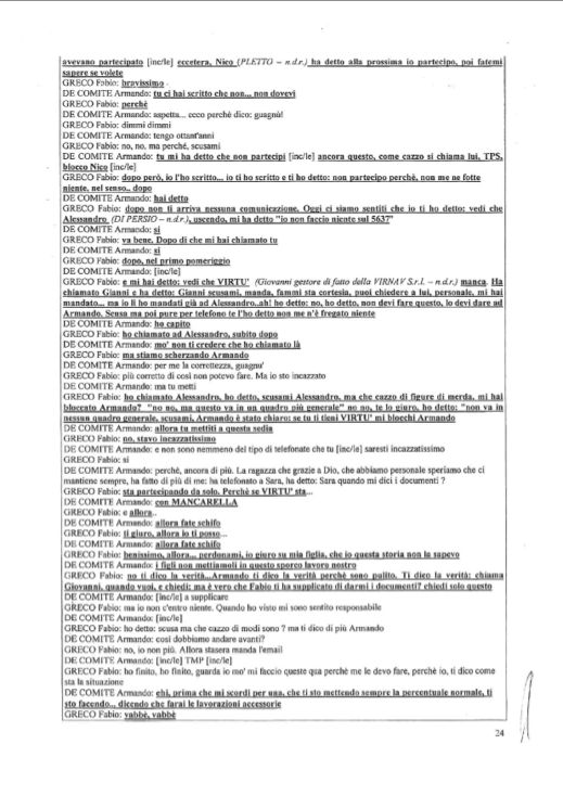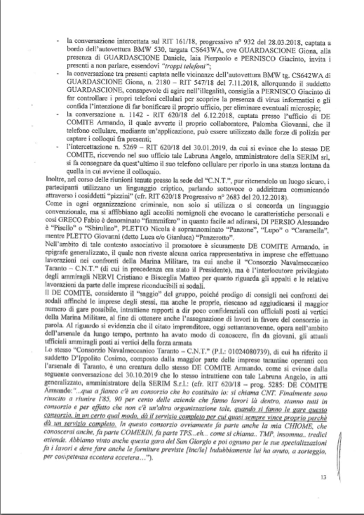 La pubblicazione degli atti avviene a puntate esclusivamente per consentire ai lettori di poter meglio focalizzare i fatti oggetto dell’inchiesta, e sopratutto per evitare le solite strumentalizzazionie gestione mediatica unilaterale degli atti compiuta da qualche cronista per qualche decina di euro in più nel proprio portafoglio, o fiancheggiare qualche avvocato difensore degli indagati. Una compagnia di giro, o meglio una “cricca” ben nota nel Palazzo di Giustizia di Taranto.