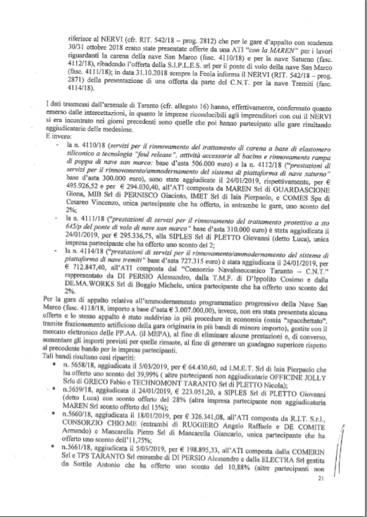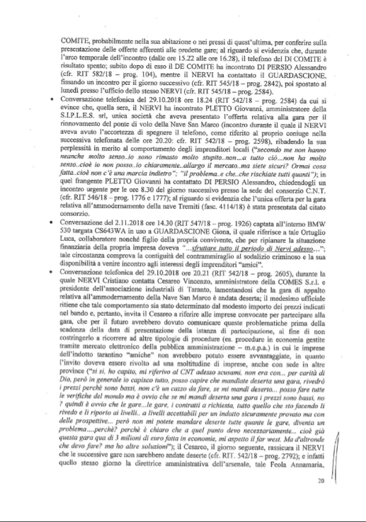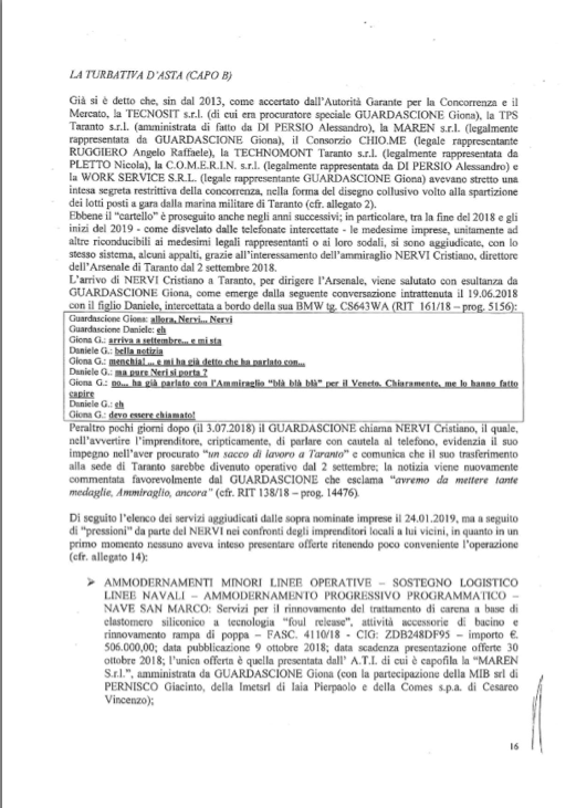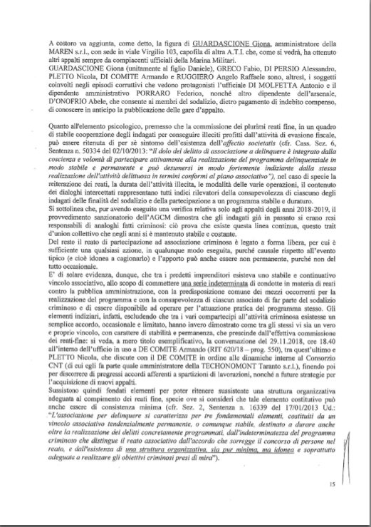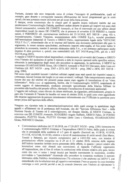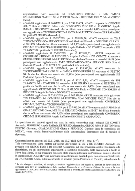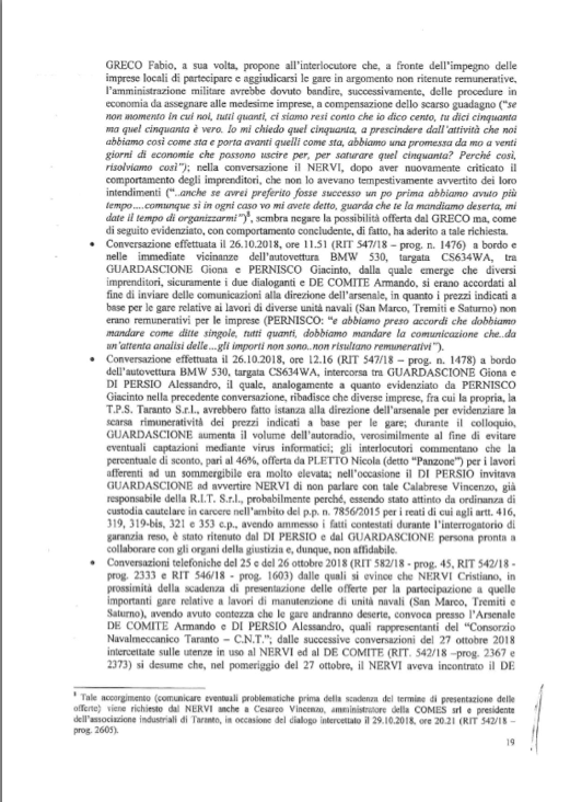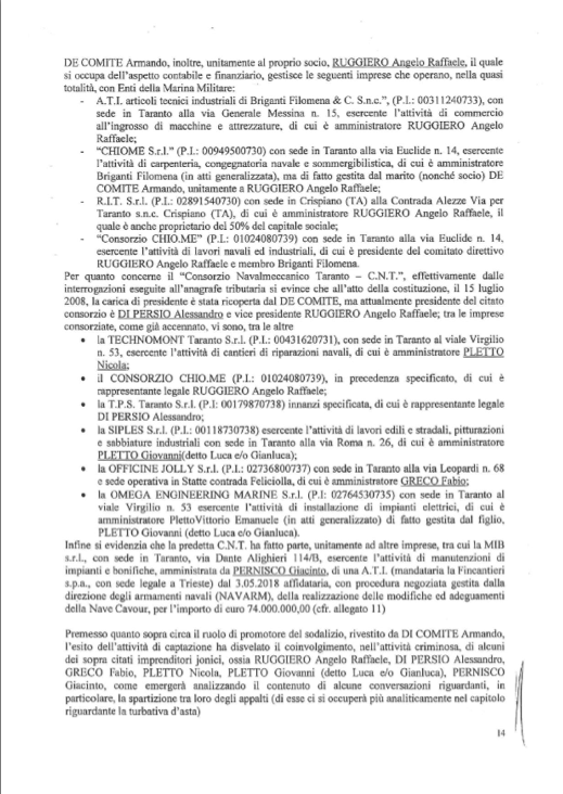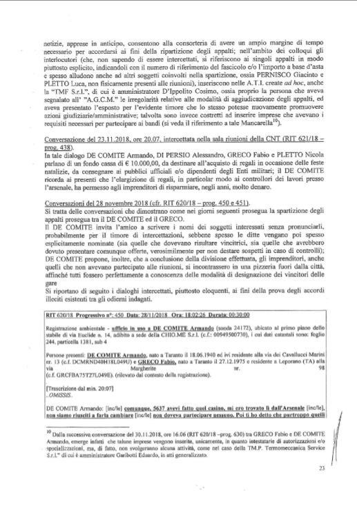 ROMA – Come sempre il nostro giornale pubblica i documenti integrali dell’ordinanza emessa dal Gip dr. Benedetto Ruberto, a seguito del terzo filone d’inchiesta condotta dalla Guardia di Finanza di Taranto, coordinata dal procuratore aggiunto Maurizio Carbone.