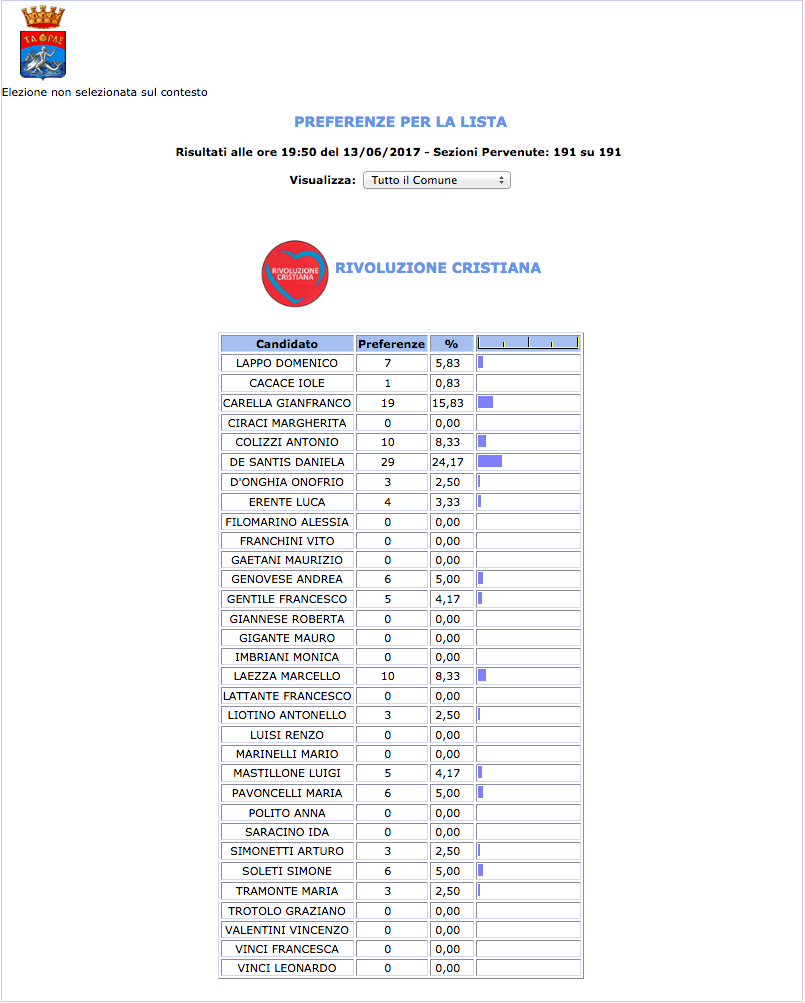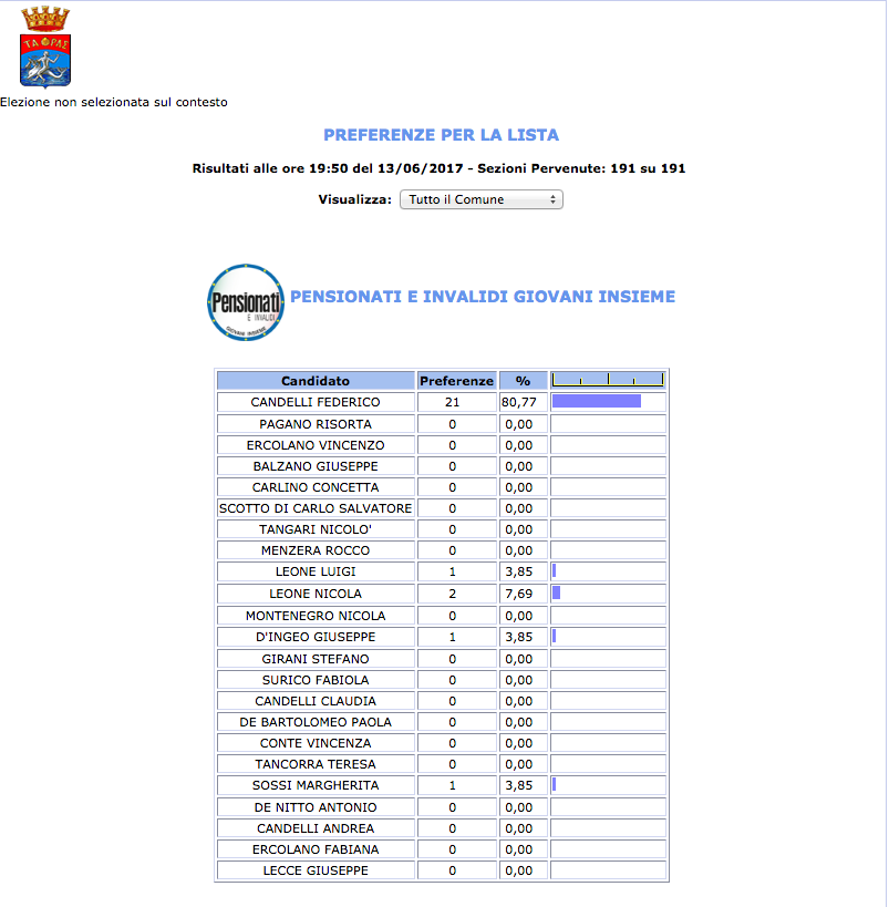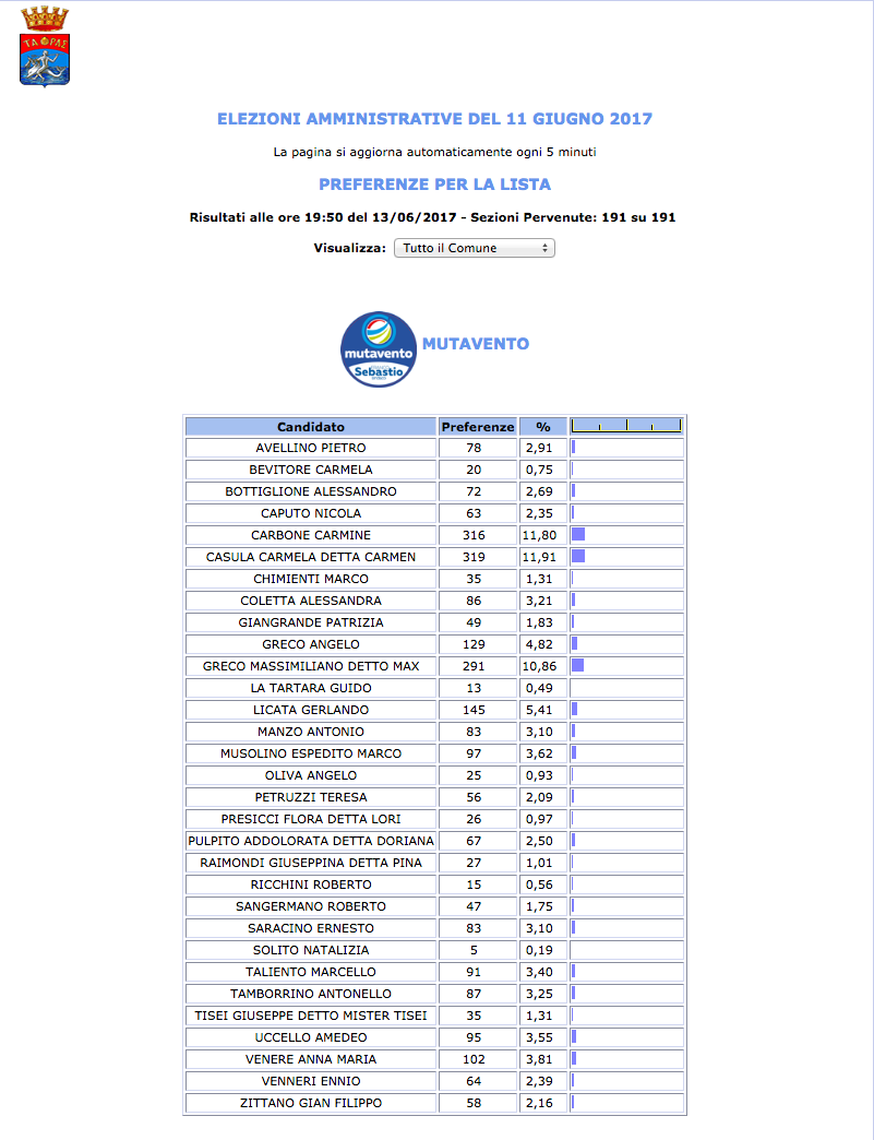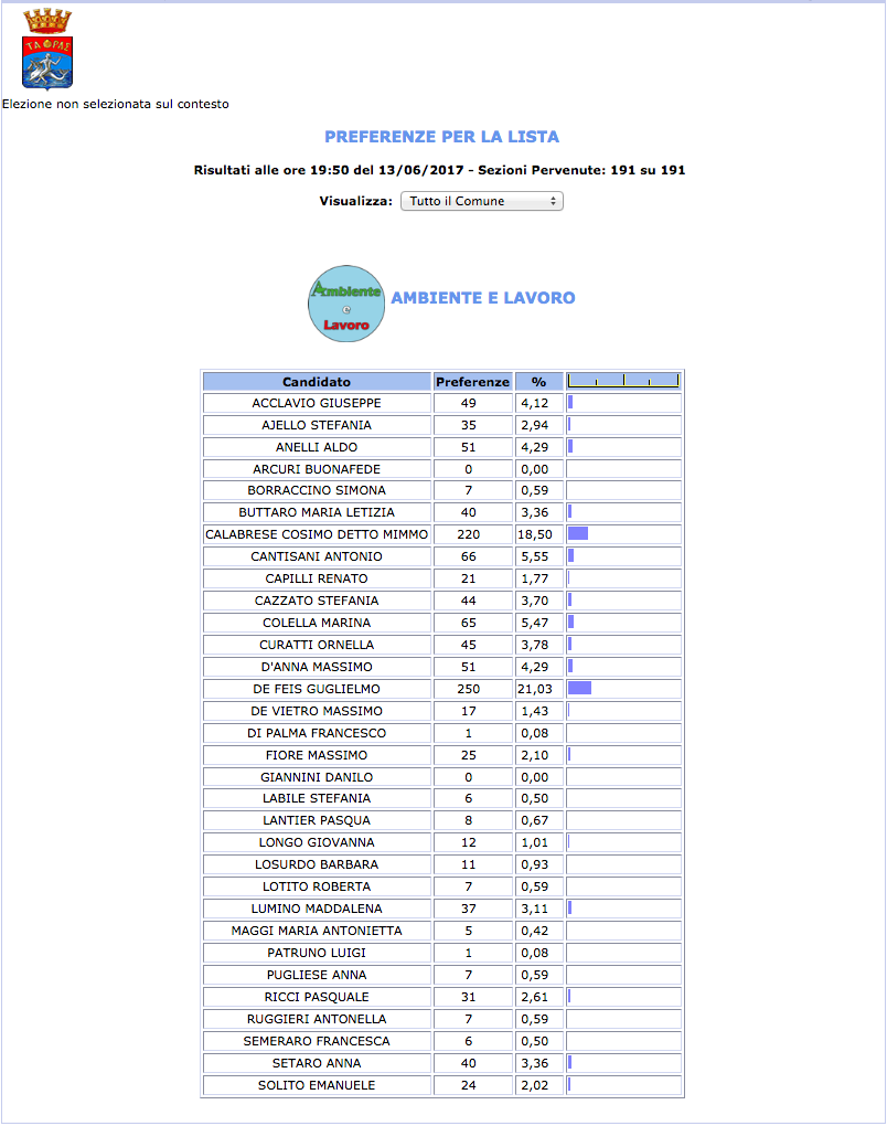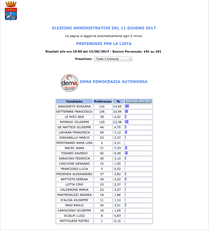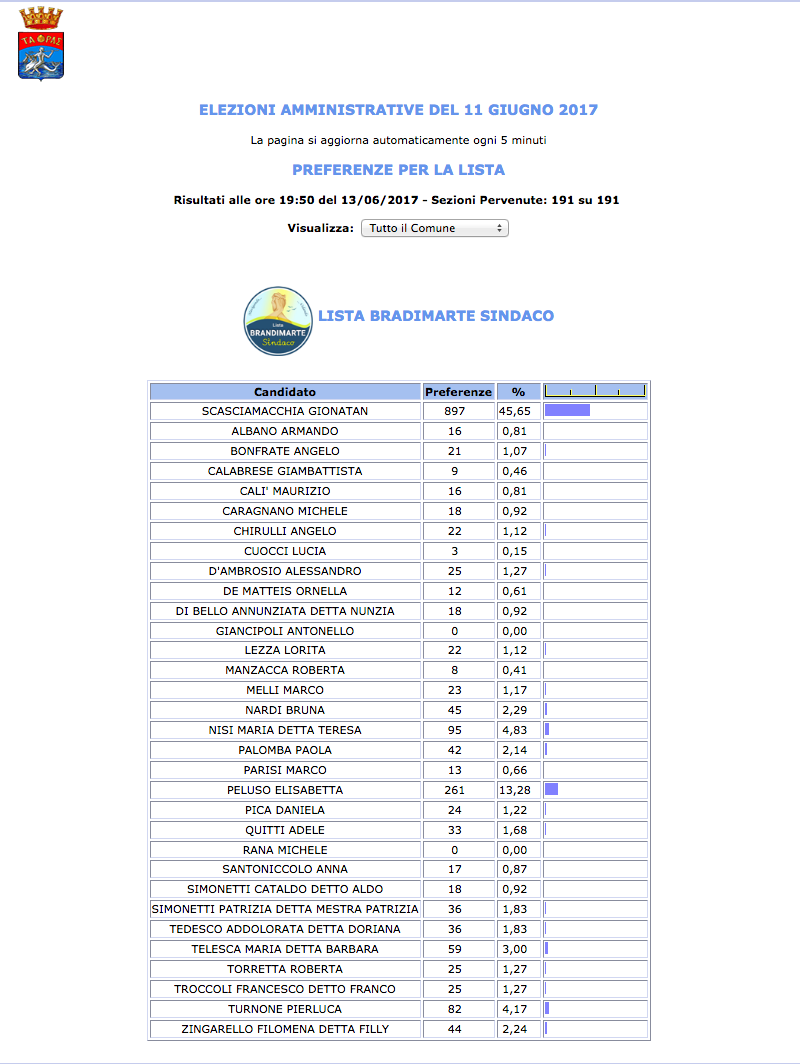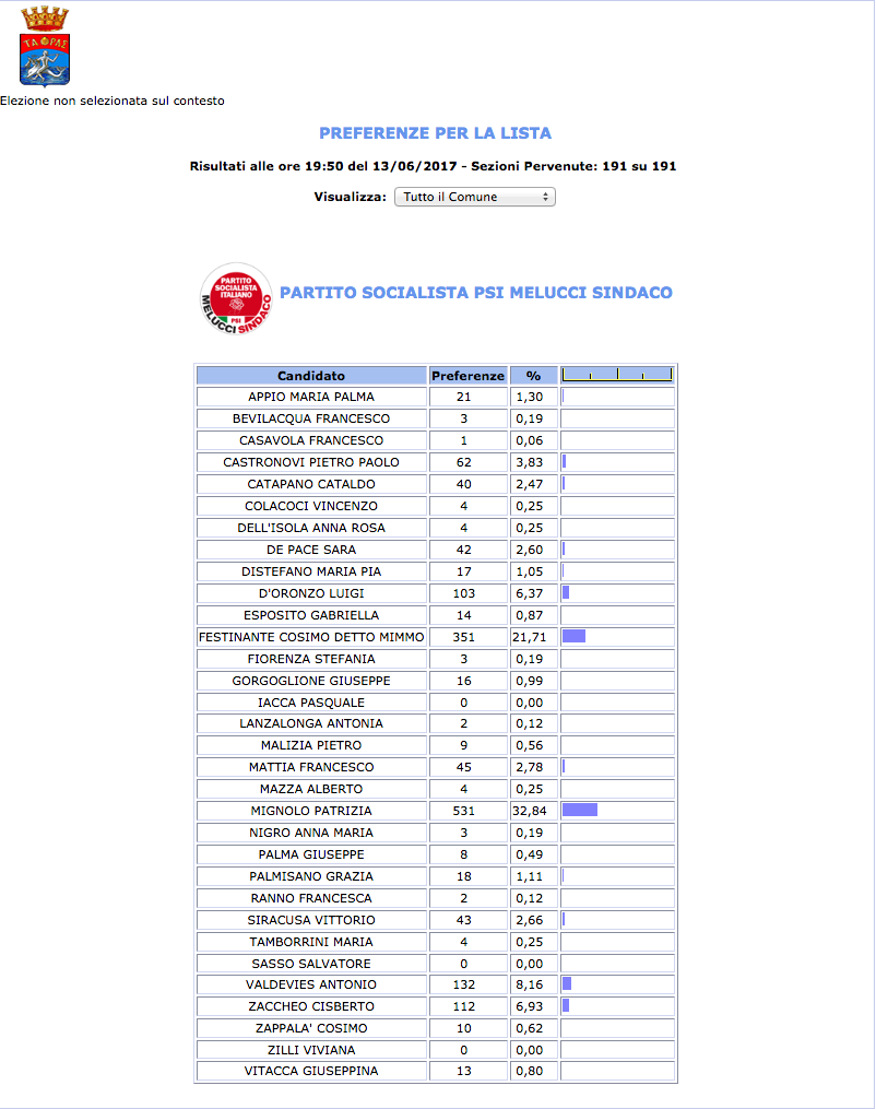 ROMA – Anche il Comune di Taranto fatica a pubblicare i dati definitivi delle preferenze dei candidati al Consiglio Comunale di Taranto. I dati che pubblichiamo sono “ufficiali“, e definitivi. Per leggere meglio le liste con le preferenze basta cliccare per due volte sopra l’immagine della lista di vostro interesse.