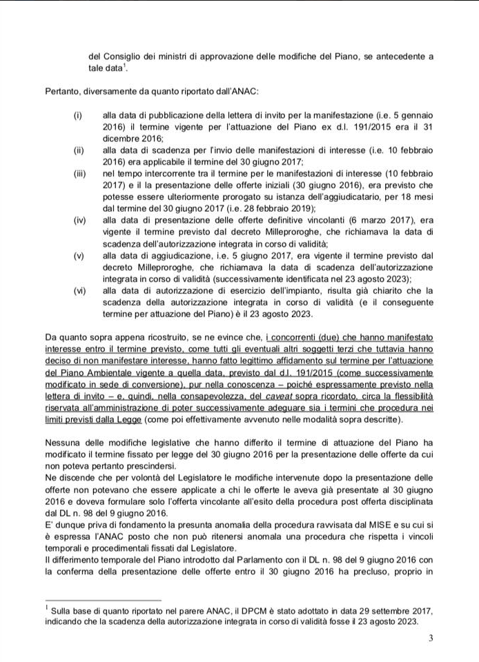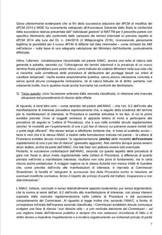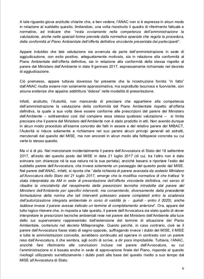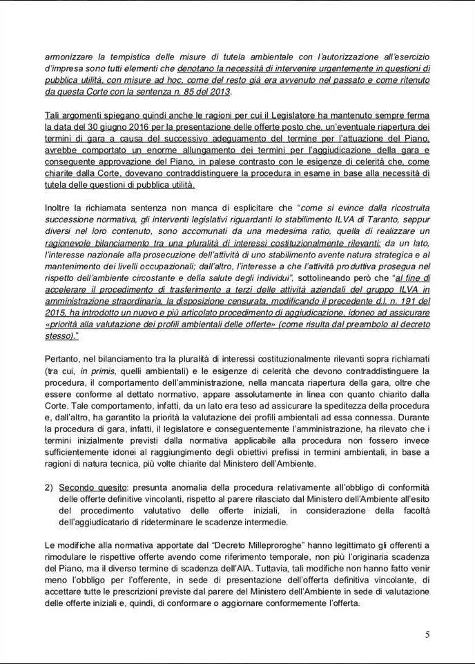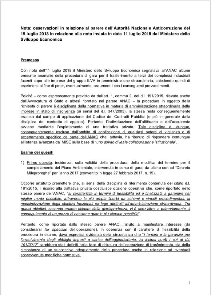 “E assumiti la responsabilità di annullare la gara se la ritieni viziata” – ha concluso l’ex-ministro. – “Pubblico il parere dell’Avvocatura di Stato su rilanci e riapertura della gara e possibile non aggiudicazione a Mittal sulla base del rischio antitrust. Ognuno giudichi”