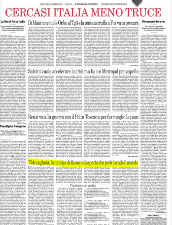 I più importanti giornali italiani hanno trascurato, e ridotto al minimo , la notizia delle centinaia di arresti che hanno smantellato una parte della mafia più potente, quella calabrese.nascondendola persino dalla prima pagina