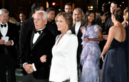 “Un tempo ci si chiudeva nel proprio mondo e si ignorava il mondo, ma il mondo oggi è cambiato – spiega Armani, che con Lauren Hutton forma la coppia più fotografata della serata – è diventato piccolo, tutti ci rendiamo conto di ciò che succede e ciò ci mette in condizione di dover fare la nostra parte”. Chi più chi meno, chi è qui stasera ha già iniziato: lo stilista Marco de Vincenzo, accompagnato da Tina Kunakey, felice di esser passato alle pellicce ecologiche, Alberta Ferretti fiera del suo abito sostenibile.