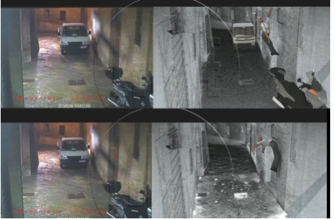 L’ingegner Monfreda spiega ancora: “Siccome la sbarra è all’interno del davanzale, cade David, sbatte i polsi sul davanzale e questo moto di urto fra il davanzale e i polsi gli genera un impulso che lo fa cadere all’indietro. e vediamo che in questa simulazione David andrebbe a cadere esattamente radente al muro e distante poi anche dal pozzetto di cui parlavamo prima. Quindi questa non può essere l’ipotesi reale. David non si è lasciato cadere tenendosi e poi rilasciando le mani dalla sbarra”. La configurazione più coerente sarebbe un’altra: “Abbiamo ipotizzato che David venga trattenuto da due persone e poi rilasciato. Si vede proprio che David, durante la caduta è distante dal muro e cade poi nella posizione in cui viene ritrovato adiacente a quel tombino che poi noi vediamo là in basso, ed è quella più verosimile per arrivare a questa soluzione che ha dei margini di compatibilità del 95%. (…) Con dei software di elaborazione forense abbiamo sovrapposto sia il video della videosorveglianza sia il video della simulazione e vediamo che il corpo del manichino simulato è proprio sovrapposto al corpo di David Rossi nel video“.