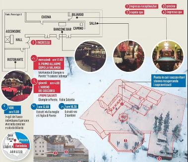 La polizia scientifica fa ricorso anche a sofisticate tecnologie per individuare le persone attraverso i loro cellulari. Analoghe apparecchiature sofisticate vengono utilizzate dai soccorritori della Guardia di Finanza, i primi ad intervenire sul luogo della tragedia . “Abbiamo altri segnali da sotto la neve e le macerie, stiamo verificando. Potrebbero essere persone vive, ma anche le strutture dell’albergo che si muovono sotto il peso della neve“, ha dichiarato il dirigente dei vigili del fuoco, Alberto Maiolo, dal centro operativo di Penne.