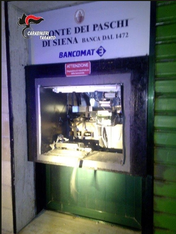 Già nello scorso novembre 2015 dei malviventi avevano tentato di sradicare lo sportello bancomat sempre al Monte dei Paschi di Siena, in Maruggio, località Campomarino, ma l’intervento di una pattuglia dei Carabinieri, allertata dall’allarme lanciato da un istituto di vigilanza immediatamente intervenuto sul posto per primo, aveva messo in fuga il gruppo di ladri.