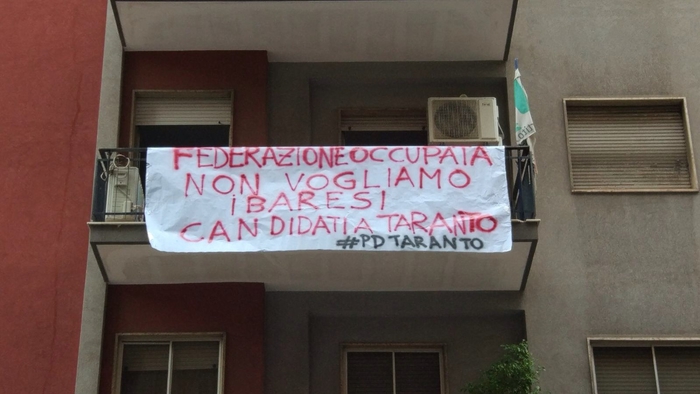 “In attesa di risposte da parte della segreteria nazionale – è detto nel documento di una folta rappresentanza di iscritti, amministratori e dirigenti del Partito Democratico di Taranto e provincia – l’assemblea resta convocata in seduta permanente fino a successive determinazioni e senza escludere procedimenti di autosospensione”. Gli autori della protesta già ieri avevano apposto striscioni nella sala riunioni e sul balcone con la scritta “Federazione occupata, non vogliamo i baresi candidati a Taranto“.