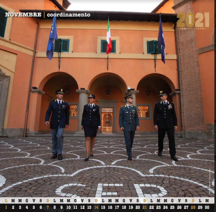 Tre immagini in particolare simboleggiano lo spirito di servizio: il mese di marzo con l’ispettore Santa Perrone e la piccola Elena Luisi salvata dai suoi rapitori, il mese di agosto con il reparto mobile che presta soccorso agli abitanti della Val di Fiemme, il mese di dicembre con i poliziotti impegnati nell’attività connessa all’emergenza Covid 19, a salvaguardia della salute pubblica.