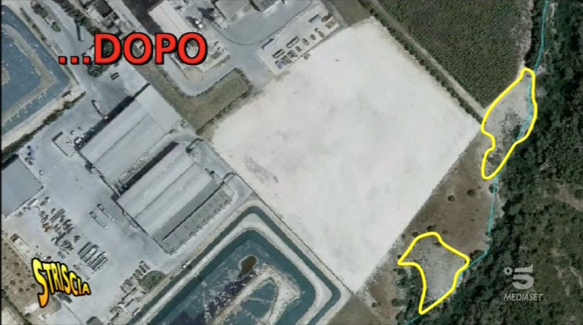 al riguardo, dalla puntata della trasmissione Striscia la Notizia, servizio di Pinuccio, andata in onda il 1o ottobre 2018, si apprende che l’area boschiva sarebbe stata del tutto estirpata. In questo senso, sempre il servizio citato, richiama un atto dell’Avvocatura provinciale che ritiene essersi verificato addirittura un «repentino spostamento dovuto alla mano dell’uomo», vale a dire che «una evidente vegetazione boschiva di colpo si [sarebbe] vaporizza[ta]», e «sono evidenti incisioni lasciate dai denti di un escavatore meccanico». Il medesimo servizio giornalistico presenta immagini assai chiarificatrici dei luoghi prima e dopo l’assunto intervento dell’uomo;
