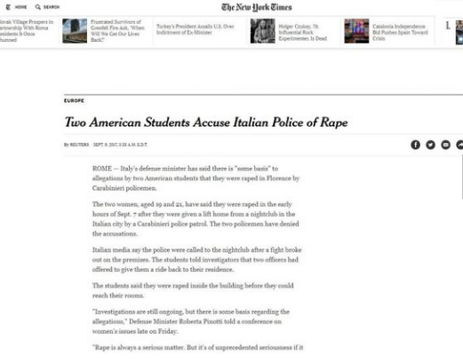 Oltre alla Procura di Firenze anche la Procura Militare di Roma ha aperto un’indagine per i propri aspetti di competenza in relazione alla denuncia di due studentesse americane.