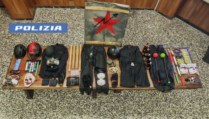 Gli oggetti sequestrati che, secondo gli investigatori, erano destinati a ostacolare l’azione delle forze dell’ordine e a compiere azioni violente contro poliziotti e giornalisti presenti sul posto. Gli agenti sono stati colpiti mentre svolgevano il loro dovere: particolare rilievo mediatico è stato dato al video, terribile, del poliziotto Alessandro Calista del Reparto Mobile di Padova che è stato accerchiato da una dozzina di antagonisti – a volto coperto -, preso a pugni e calci e a martellate, mentre il collega Lorenzo Virgulti è intervenuto a proteggerlo con lo scudo portandolo in salvo. La premier Giorgia Meloni ieri mattina ha visitato i poliziotti ricoverati alle Molinette portando loro la vicinanza e solidarietà dello Stato.